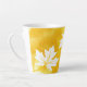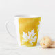 Aquarelle jaune moderne et mug en latte feuille d'érable blanc. Un joli design qui comprend de beaux feuilles d'érable en blanc sur l'aquarelle jaune.