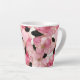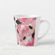 Tasse Latte Artistic Pink Blooms Black Ink Abstract