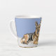 Cette tasse en latte présente un magnifique tableau d'un chien berger allemand, noir et bronzé, ou Alsacien. Cela ferait un cadeau parfait pour un amoureux des chiens, et parfait pour l'équipe avec des ustensiles de cuisine assortis.