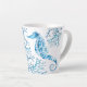 Tasse Latte Bleu côtier Hippocampe et corail Aquarelle