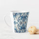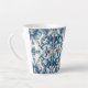 Une tasse en latte qui a une décoration et un design en carrelage bleu et blanc.