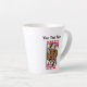 Cette tasse Latte a une reine du coeur colorée et ornée jouant la carte sur le devant avec des rangées de coeurs rouge vif au-dessus et au-dessous. Customisez votre texte en haut avec le modèle.