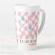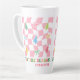 Tis The Season Super Rose Retro Coquette Noël Nom personnalisé Festive Fête Latte Mug présente le texte "Tis The Season" dans la typographie de script moderne accentué avec des arbres de Noël et des arcs sur un damier rose avec votre nom personnalisé ci-dessous. Parfait pour les cadeaux de Noël, fêtes de Noël et fêtes de fin d'année, anniversaires et plus encore. Créé par Evco Studio www.zazzle.com/store/evcostudio