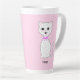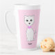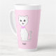 Belle caricature blanche de chat heureux sur une tasse rose pâle. Idéal pour tous.