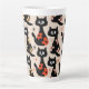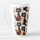 Un arrangement ludique et fantaisiste de chats noirs décorés avec des fleurs audacieuses et colorées dans les tons rouge, orange et beige. L'arrière - plan est d'un beige doux, qui contraste agréablement avec les silhouettes de chat foncé. Idéal pour un projet d'Halloween mignon ou toute autre période de l'année