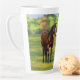 Tasse Latte Chevaux Du Quartier De La Baie Brown Dans Les Pâtu