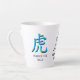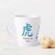 Moderne Chinois personnalisé Nouvel An DU TIGER Latte Mug, conçu sur trois côtés avec le symbole chinois zodiaque lunaire pour le TIGER dans les couleurs populaires du bleu, gris et orange. Il y a trois TEXTES PERSONNALISABLES, où vous pouvez ajouter votre nom, votre salutation (par ex. Joyeux anniversaire) ou créer votre propre texte. Cette année de la tasse TIGER ferait un grand ajout à votre collection de tasse de zodiac chinois, et peut être donné comme cadeaux personnalisés pour les anniversaires et Noël, ainsi que des cadeaux de Nouvel An. Choisissez parmi une large sélection de modèles de Nouvel An chinois pour chaque signe du Zodiac chinois sur les cartes, décoration de maison, vêtements et cadeaux, conçus par Berean Designs.