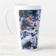 Éperviers et pigeon par la mangeoire en hiver. Des arbres de Noël couverts de neige ornés de boules rouges et bleues. Joyeux Noël. Une belle tasse en latte unique. Vous pouvez transférer cette conception à une grande variété d'autres produits, juste choisir un produit à partir d'une ligne ci-dessous. Amusez-vous et soyez heureux !