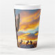 Desert Southwest Arizona Javalina maman et bébés Paysage Latte Mug Coffee Cup. Couleur vive d'un paysage désertique de cochons sauvages de la famille Javalina lézarder au lever du soleil du matin. vous pouvez customiser l'image de la taille et des styles de couleurs du désert à votre goût. Customisez vos tailles et styles de tasse amérindienne de style sud-ouest. Super idée cadeau. Photographie images du beau désert du sud-ouest de l'Arizona et la nature de la famille sauvage et mignonne des bébés animaux.
