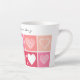 Une tasse moderne branchée de latte de la Saint-Valentin aux coeurs blancs et aux couleurs rouge et rose. Personnalisez en ajoutant un message ou un nom personnel de Saint-Valentin dans une belle police manuscrite.