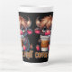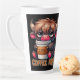 A funny and sarcastic design showcases a cute highland cow holding a to-go coffee cup brimming with coffee. With big blue eyes and a sleepy, tired expression, the cow rests its head on the cup's lid, its fluffy black fur adding to the charm. The colorful text reads, "Coffee first." This playful design is available on a wide variety of products, making perfect gifts for coffee lovers.