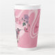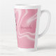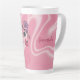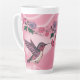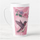 Personnalisez cette Belle Mug Latte "One of a Kind" ! Il présente un colibri adorable siroter le nectar d'une belle rose et des fleurs violettes sur un Arrière - plan de tourbillon rose! Peinture d'art original par l'artiste Kerry Miller. Bon appétit !