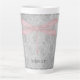 Profitez de votre café du matin ou du soir avec un Damas de libellule rose personnalisé en latte. La conception de la motte comporte une libellule colorée contre un motif vintage gris damassé élégant. Autres cadeaux disponibles avec ce design ainsi qu'une variété de couleurs.