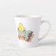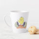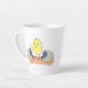 Une mignonne petite tasse en latte de Pâques avec deux adorables petits poussins en caricature jaune surgissant de leur coquille d'oeuf décorée. © ArianeC Illustrations-Tous droits réservés
