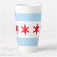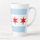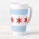 Latte Mug avec drapeau de la ville de Chicago, Illinois, drapeau rayé blanc et bleu clair avec quatre étoiles rouges