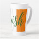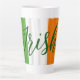 Couleurs irlandaises tall tall tall tall avec drapeau de l'Irlande image. Le texte irlandais en script vert foncé s'enveloppe autour d'une grande tasse de café blanc.