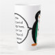 Mme Penguin s'est rendue au Mexique et a acheté un gilet du drapeau mexicain. Ici, il apparaît sur une grande tasse en latte. Vous pouvez lui faire dire n'importe quoi en changeant les mots dans sa bulle de discussion. La Señora Pingüino dice MI ESPAÑOL ES MUY MAL Y MUY PEQUEÑO SOLAMENTE. Elle parle aussi anglais. Idéal pour les anniversaires grillés, le Cinco de Mayo et les occasions spéciales. Le 20 janvier est la Journée de sensibilisation aux pingouins.