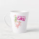 Un cochon heureux sur une tasse en latte. Utilisez "Personnalisez ce modèle" pour modifier le texte "Café, votre excuse quotidienne pour CAKE !" et créer un cadeau unique et customisé ; les changements de texte sont reflétés de part et d'autre. Une tasse élégante pour les amateurs de gâteau et de café, avec un cochon brillant, sous un gâteau de couche de teetering avec des éclats de glace verte et surmonté de bougies roses.