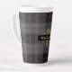 Tasse Latte Élégant Tartan Noir Plaid Monogramme