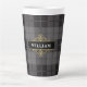Sirotez votre boisson préférée dans un style élégant avec cette tasse en latte personnalisable qui comprend un motif classique en plaid gris et noir, un emblème en or et un nom personnalisable. Ce design est élégant et masculin, et il fera un grand cadeau aux hommes. Modifiez le nom pour qu'il corresponde à vos besoins.