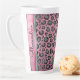 Sur cette tasse en latte élégante est un ruban argenté chatoyant qui divise verticalement l'empreinte de léopard en argent glittery et le fond brillant rose chaud, où vous pouvez le personnaliser pour le rendre unique. Vibes de glamour exotiques