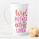 Femme Mère Café Lover texte avec les coeurs, feuilles de café, et une tasse de café.