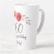 Fleur d'aquarelle rose rouge 60e anniversaire Floral Latte Mug. Aquarelle rouge rose et brindilles joyeux anniversaire et nom dans le script tendance. Idée cadeau pour une femme qui fête son 60e anniversaire.
