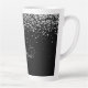 Parties scintillant en argent noir glam Élégante Monogramme Latte Mug. Personnalisez facilement ce design chic et branché en latte, avec une élégante parties scintillant brillante argentée sur un arrière - plan noir. Le design comprend votre monogramme manuscrit avec de jolis tourbillons et votre nom.