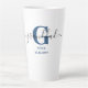 Tasse Latte Grand-père Élégant Script Monogramme Bleu