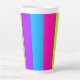 Des rayures de néon brillantes, audacieuses et colorées, avec du blanc au centre, donnent une note audacieuse et heureuse. Tasse latte.