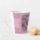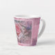 C'est un "One of a Genre" Rose Latte Mug unique ! Il présente une grande belle rose rose entourée de fleurs d'haleine de bébé nichée dans une frontière violet, rose et vert Arrière - plan et dentelle! Art Graphique Original Par L'Artiste Kerry Miller