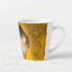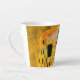 Latte Mug représentant la peinture à l’huile de Gustav Klimt avec la feuille d’or The Kiss (1908). Un homme et une femme, aux couleurs dorées brillantes, embrassent et embrassent avec amour dans un champ de fleurs. Un grand cadeau pour les amateurs d'art Art Nouveau et autrichien.