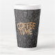 Doodles De Symboles De Café Sur L'Arrière - plan Noir, Avec L'Heure Du Café Centre.