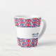 Patriotique UNION JACK Latte Mug, spécialement conçu pour les hôtels, les pensions, les entreprises et l'industrie hôtelière. Le design montre un panneau blanc uni avec l'Union Jack dans un arrière - plan motif carrelé. Le texte personnalisable lit WELCOME plus nom d'espace réservé, que vous pouvez personnaliser avec le nom de votre entreprise, et ajouter également votre propre salutation. Le texte est justifié à droite et peut parcourir toute la largeur. Une bonne façon d'ajouter ces petites touches vitales pour vos clients, visiteurs et invités. Ce design de drapeau offre une touche patriotique à votre buverie d'entreprise.