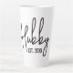 Hubby & Wifey coutume établie année latte tasse de café. Personnalisez avec votre propre date. Design élégant de typographie de script. Grosse tasse au design noir et blanc.