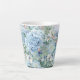 Cette jolie tasse en latte présente une belle aquarelle design florale avec des hydrangées et d'autres fleurs dans les tons bleu pastel. Deux tailles.