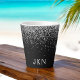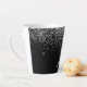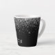Tasse à café ou thé latté avec nom en monogramme pailleté noir et argent. C'est le cadeau idéal pour un anniversaire sweet 16, un mariage, une fête de mariage, un anniversaire de mariage, une baby shower ou une soirée d'enterrement de vie de jeune fille pour quelqu'un qui aime le luxe glamour et les styles chics.