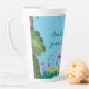 I'm Dreaming of a Green Christmas La tasse en latte personnalisée comprend un arrière - plan tropical avec des plantes tropicaux verts et du feuillage, un palmier décoré d'ornements de Noël rougeâtres, et deux flamants rouges. Un texte écrit à la main dans le ciel dit, "Je rêve d'un Noël vert." Vous pouvez modifier l'arrière - plan ou le texte et ajouter vos propres images et texte pour le rendre unique. Cela peut convenir à votre humeur. Et si ce n'est pas le cas, vous connaissez probablement quelqu'un dont l'état d'esprit lui convient. Vous pouvez également ajouter des noms et une date si vous le souhaitez.