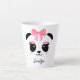 Cute panda tlatte personnalisée tasse. Joli visage de panda kawaii chubby avec joues roses, cils roses modernes et ruban rose. Ajoutez facilement votre nom pour personnaliser la tasse. Beau cadeau pour une fille, une fille, une petite amie pour un anniversaire ou toute autre occasion spéciale.