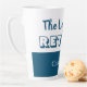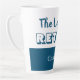 Tasse en latte personnalisée avec un trait d'humour de retraite. La tasse a la citation drôle de retraite "La Légende a pris sa retraite", qui est écrit en gras, typographie bleu océan. Pour rendre votre cadeau unique, le modèle est configuré pour que vous puissiez ajouter le nom du retraité (laissez la case vide si vous ne voulez pas de nom). Ce design a une palette de couleurs chic de bleu et blanc océanique et une simple bande de blocs de couleurs. Un cadeau de conservation utile et amusant pour votre mari ou souvenir de retraite pour un ami ou un collègue.
