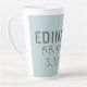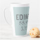 Les coordonnées longitude et latitude d'Édimbourg en fontes en détresse donnent à cette tasse en latte un look urbain moderne. Idée cadeau pour ceux qui aiment voyager ou comme un souvenir de la ville natale.