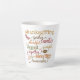 Cette petite tasse en latte est montrée avec une impression festive de messages Thanksgiving. Customisez cet objet ou achetez tel quel. Image stock