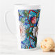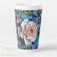 Superbe tasse à café avec un motif floral bleu et rose imitation mosaïque, avec des carreaux bleu, rose et rouge vibrants, avec des roses de couleur corail entrelacés avec feuillage vert. Le design complexe imite l'apparence d'un vitrail et de mosaïques en céramique, créant une esthétique élégante et intemporelle.