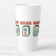 Le design de la tasse en latte amusante pour les amoureux du Mahjong comprend du texte et des tuiles pour chaque costume "Dot", "Crak" et "Bam"
