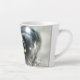 Magnifique tasse de latte conçue comme cadeau de mariage. Cette tasse de latte comporte une image imprimée d'une peinture acrylique avec deux alliances argentées à l'intérieur d'une bulle en forme de cristal.