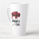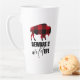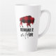 Une tasse en latte design moderne "Attention à la nature sauvage" avec une silhouette de buffle en plaid traditionnel rouge et noir. Recherchez ID669 pour voir d'autres produits avec cette conception.