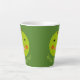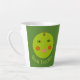 Cette énorme tasse en latte présente une pomme verte brillante avec un grand sourire et des joues rouges roses. Il y a du texte personnalisable sous la pomme qui dit meilleur enseignant.