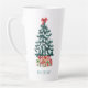 Add a touch of Christmas magic to your home with this cute seasonal drinkware, featuring a classic snow-covered Christmas tree topped with a red bow and surrounded by festive wrapped gifts. The custom text at the bottom adds a warm seasonal message, making this latte mug a perfect gift for friends, family, or anyone who loves timeless holiday decorations.