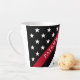 Montrez votre soutien avec cette mince tasse en latte de drapeau de pompier de ligne rouge. Cette conception comporte un drapeau de pompier noir et blanc avec une fine ligne rouge à un angle et un nom pour vous de personnaliser. Conçu par un artiste de renommée mondiale ©Tim Coffey.
