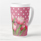 Tasse Latte Modèle : tulipes à encre, pois roses et blancs